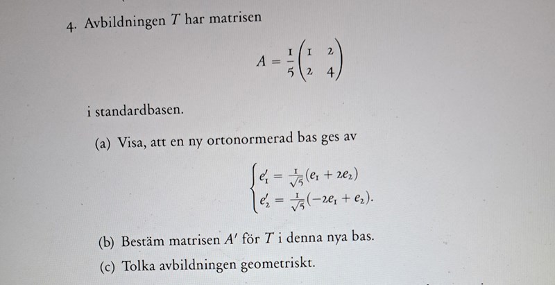 Men vi har den ortonormerade basen och vi har matrisen A. Vi ska gå från A till E'?