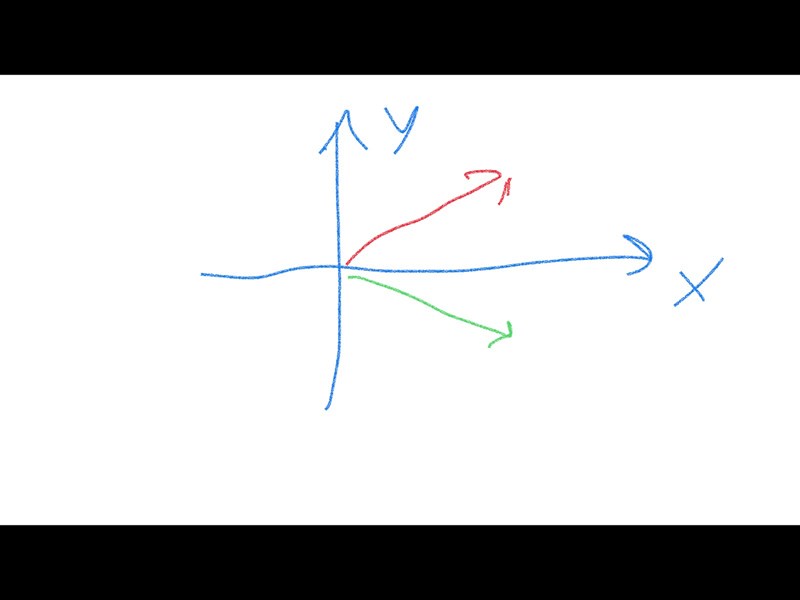 Den gröna vektorn är en spegling av den röda i x-axeln.