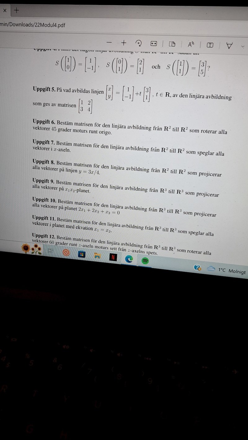 Bestäm matrisen för den linjära avbildningen från R^2 till R^2 som speglar alla vektorer