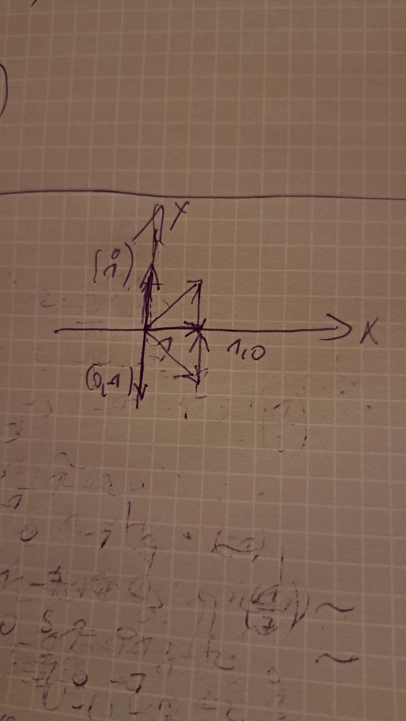 Blir det typ såhär att om man ritar deras vektorer och speglar dem så blir det som på bilden nedan. Första kolumnvektor då är dess spegelbild av sig själv som vektor medan den andra blir [0 -1]