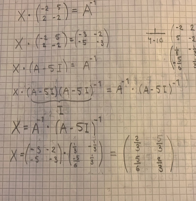 I en matrisekvation ska du, med användande av räkneregler för matriser, frigöra X.