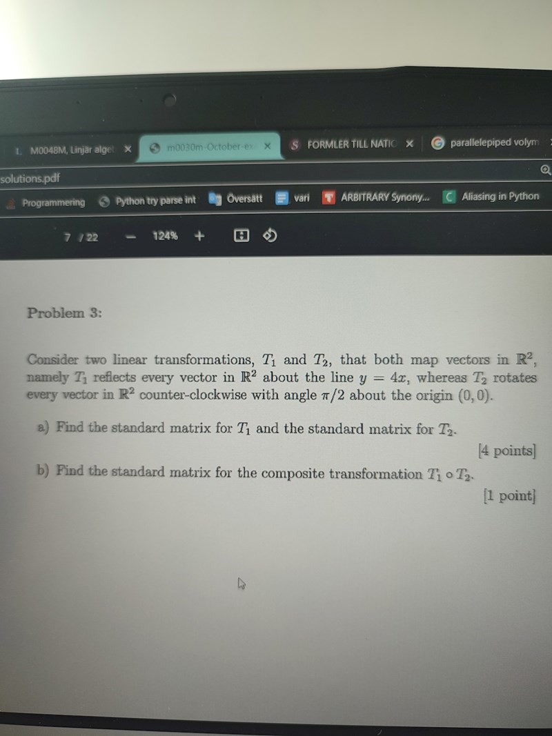 Hej! Jag försöker lösa denna fråga fråga gammal tenta men förstår inte varför deras A1 matris som min fast med bytt plats på vektorerna? Vet inte vad jag gör fel?:(