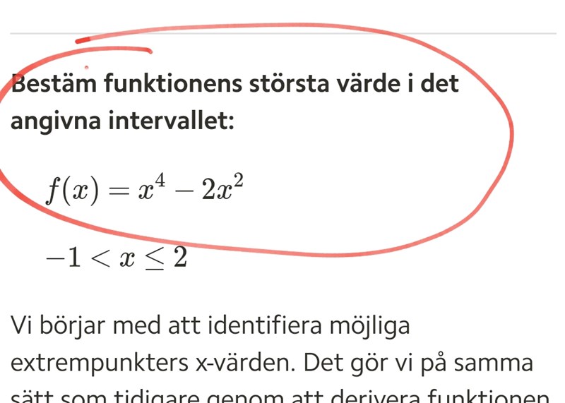 Hur lyder uppgiften? Vilken funktion är det du ska hitta maxpunkten för?