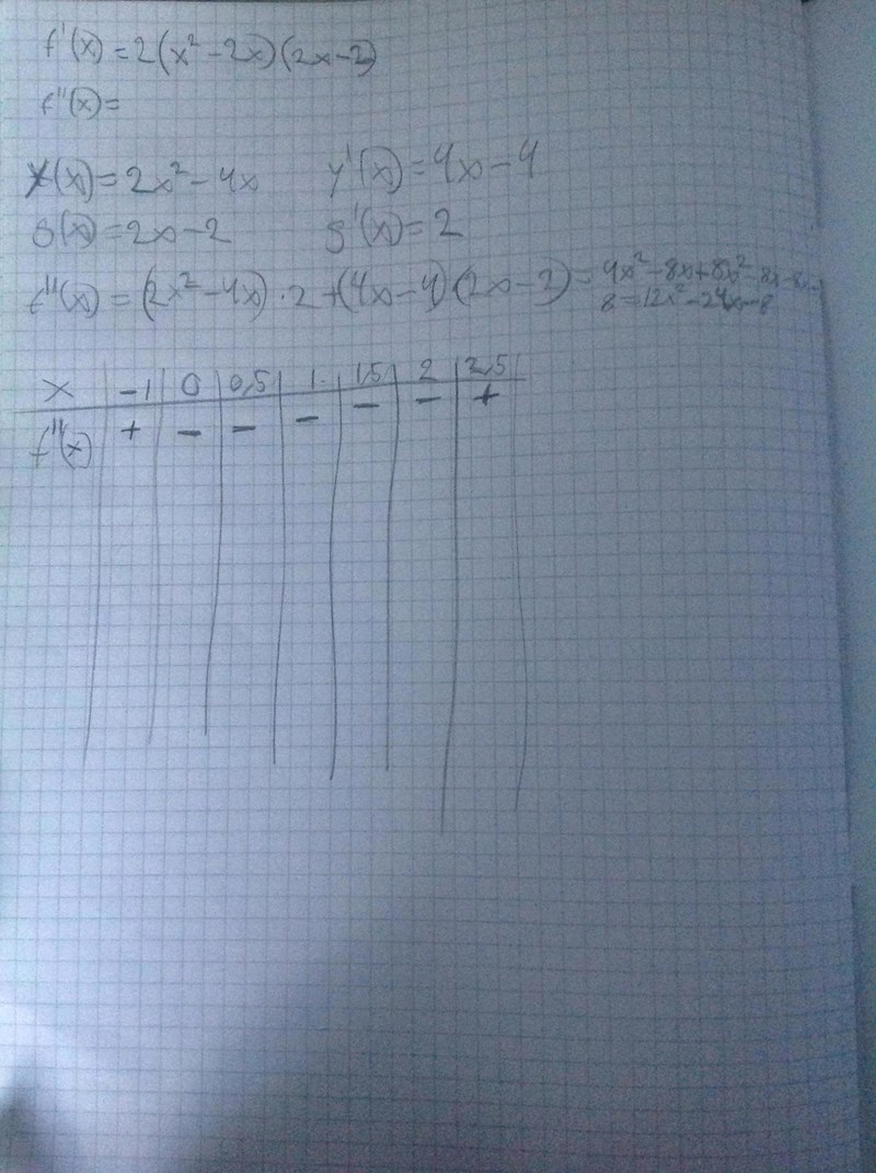 tror det borde bli bättre nu. Fick 12x^2-24x-8 som andraderivata.
