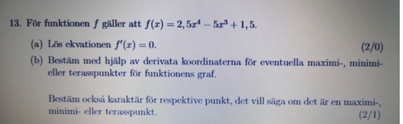 Det jag hittills har gjort är att derivera funktionen  f(x).