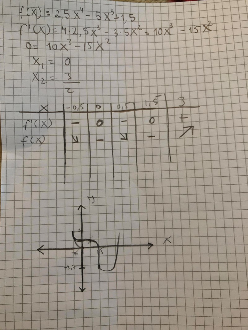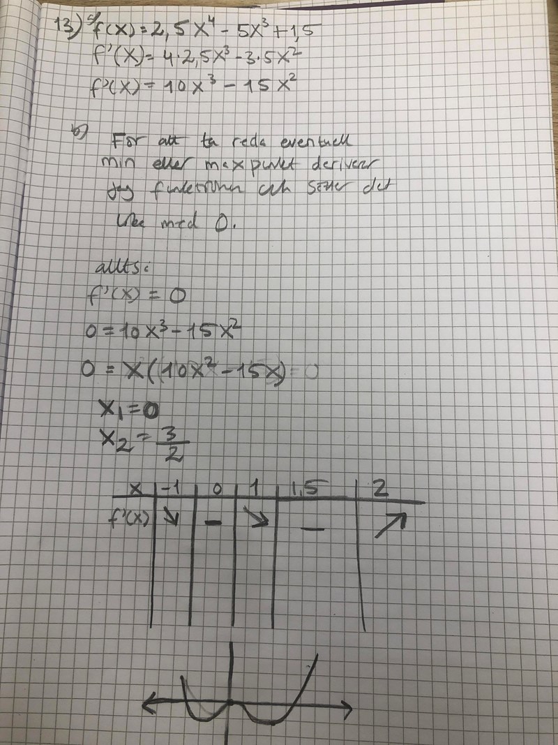 jag använde mig av en teckentabell för att ta reda på maximi & minimipunkt . Jag insåg att att det bara fanns minimipunkter. Jag vet inte hur jag ska hitta/beräkna terasspunkterna