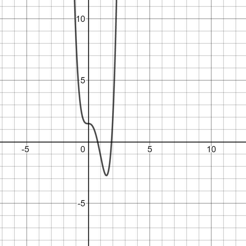 Alltså: antingen en funktion som först är stigande innan den blir 0 för att därefter fortsätta med sin stigning.