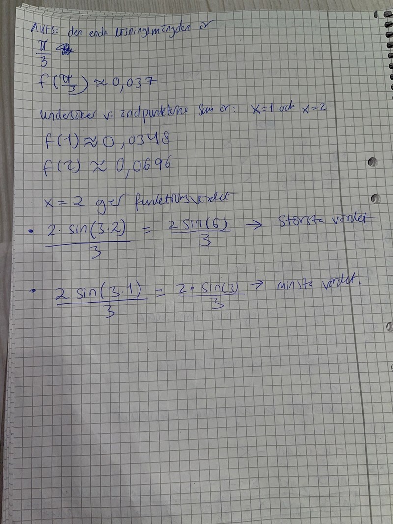 x=pi/9 ger mig det största värdet som är positivt medans -pi/9 ger det minsta värdet som är lika stor som pi/9 men negativ