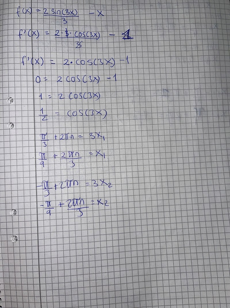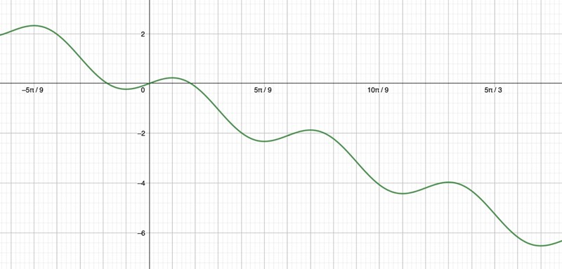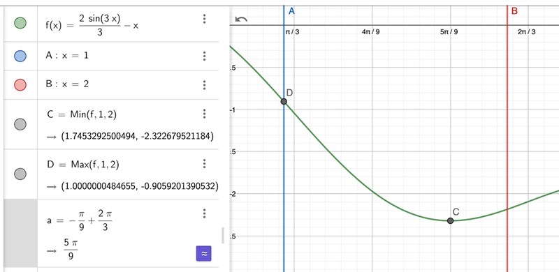 f(5pi/9)=2/3*rotenUr(3)/2-5pi/9=4*rotenUr(3)/4-5pi/9