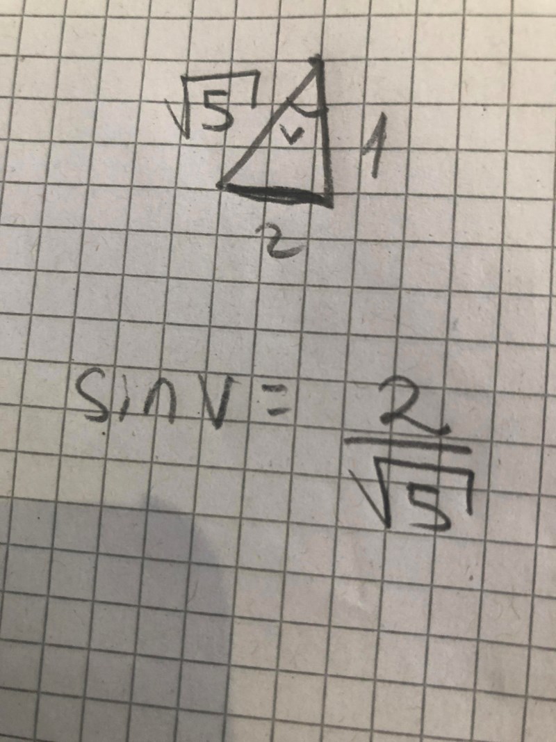En av uppgifterna gäller att bestämma sin(90°-v).