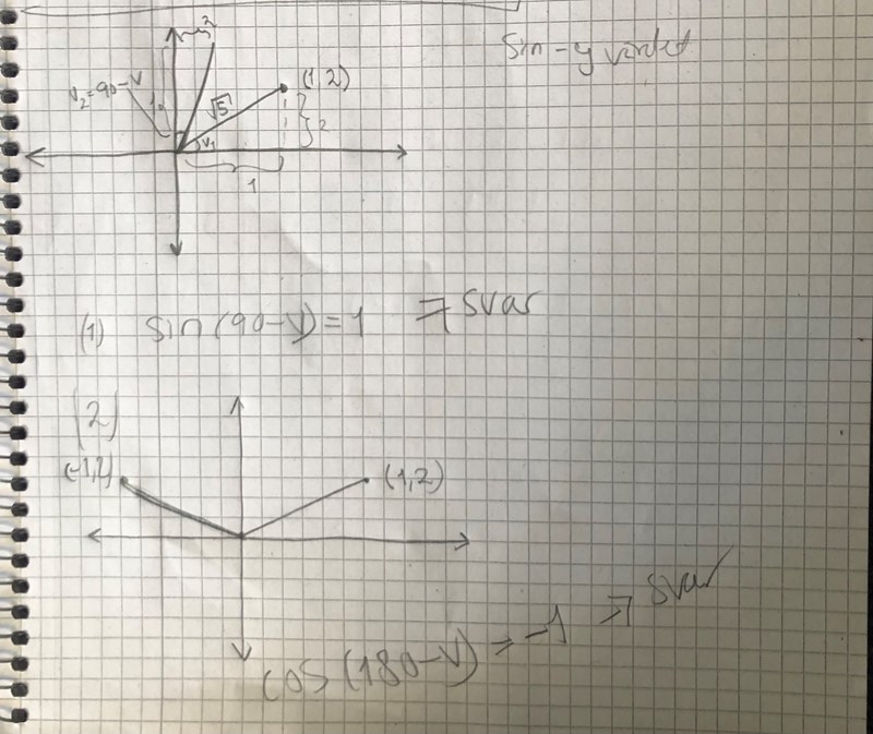 uppgiften var att ber sin för 90-v vilket alltså är storleken på vinkeln överst i triangeln