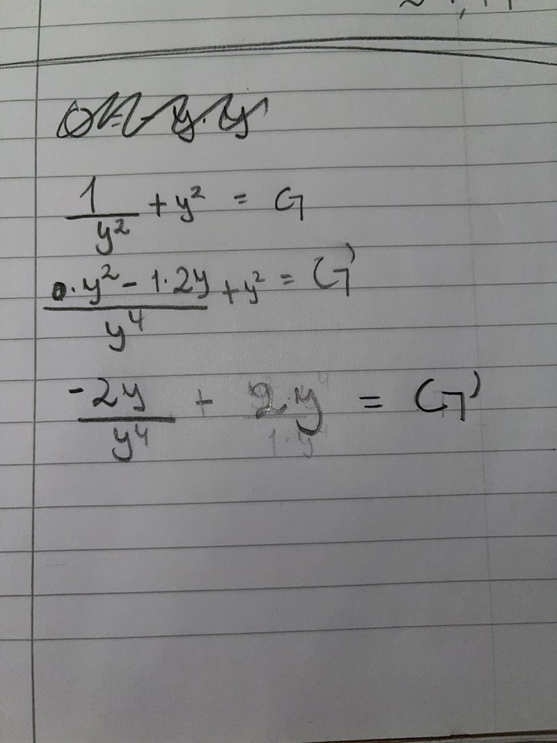 Är derivatan rätt nu? Jag använde kvotregeln för 1/yoch deriverade y2 på det vanliga sättet att man tr ner exponenten och minskar den med 1. Vilket alltså blir