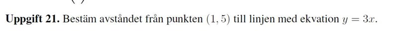 jag har inte hittat en vektor u som går mellan P och en känd punkt på linjen y = 3x. hur ska jag hitta den punkten eller väljer jag en punkt vilken som helst?