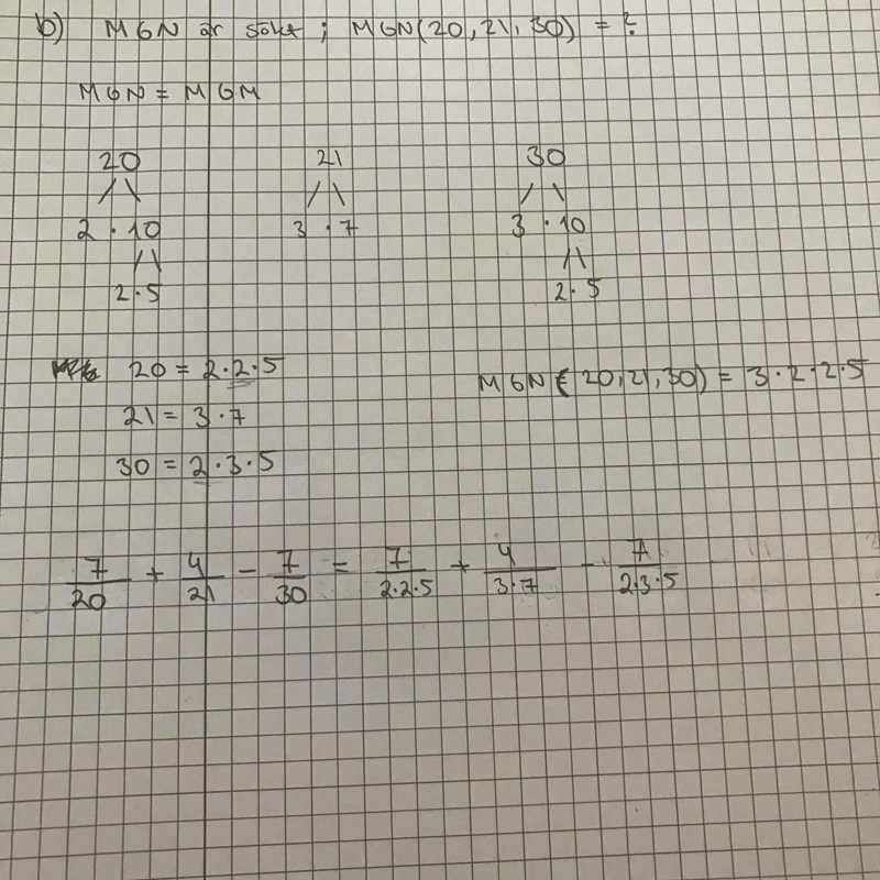 Du har glömt en faktor sju från 21. :) MGM för de tre talen är lika med .