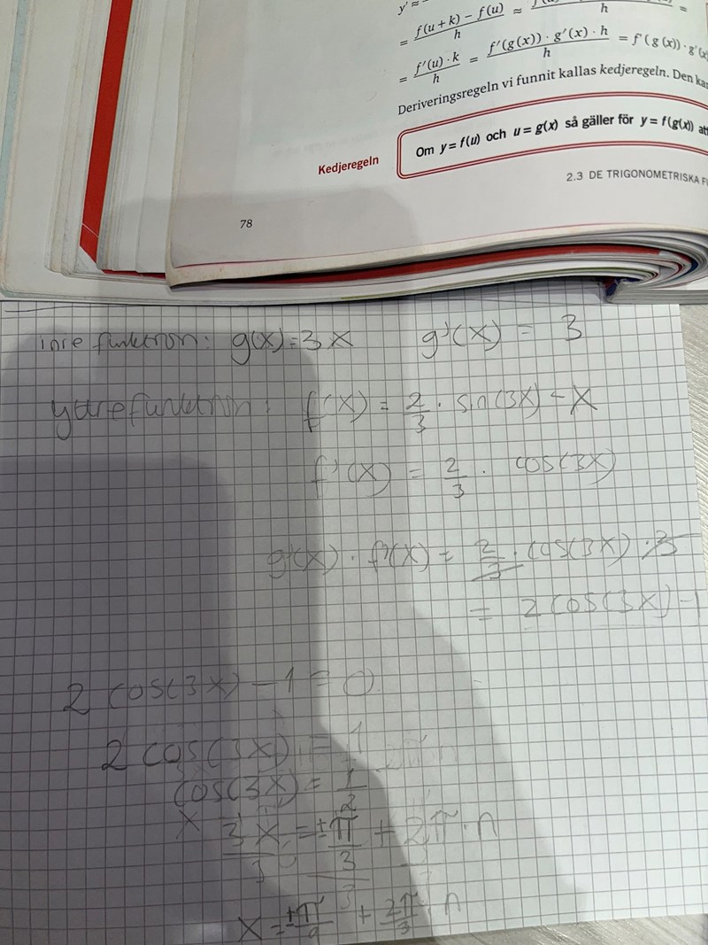 För att svara på frågan. Nu får du göra teckentabell för de lösningar som ligger i intervallet o se om det är minimipunkt.