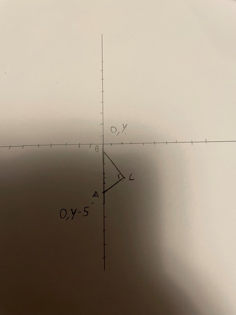 Rita en rimlig figur där hypotenusans ändpunkter ligger på (0, y) och (0, y-5).