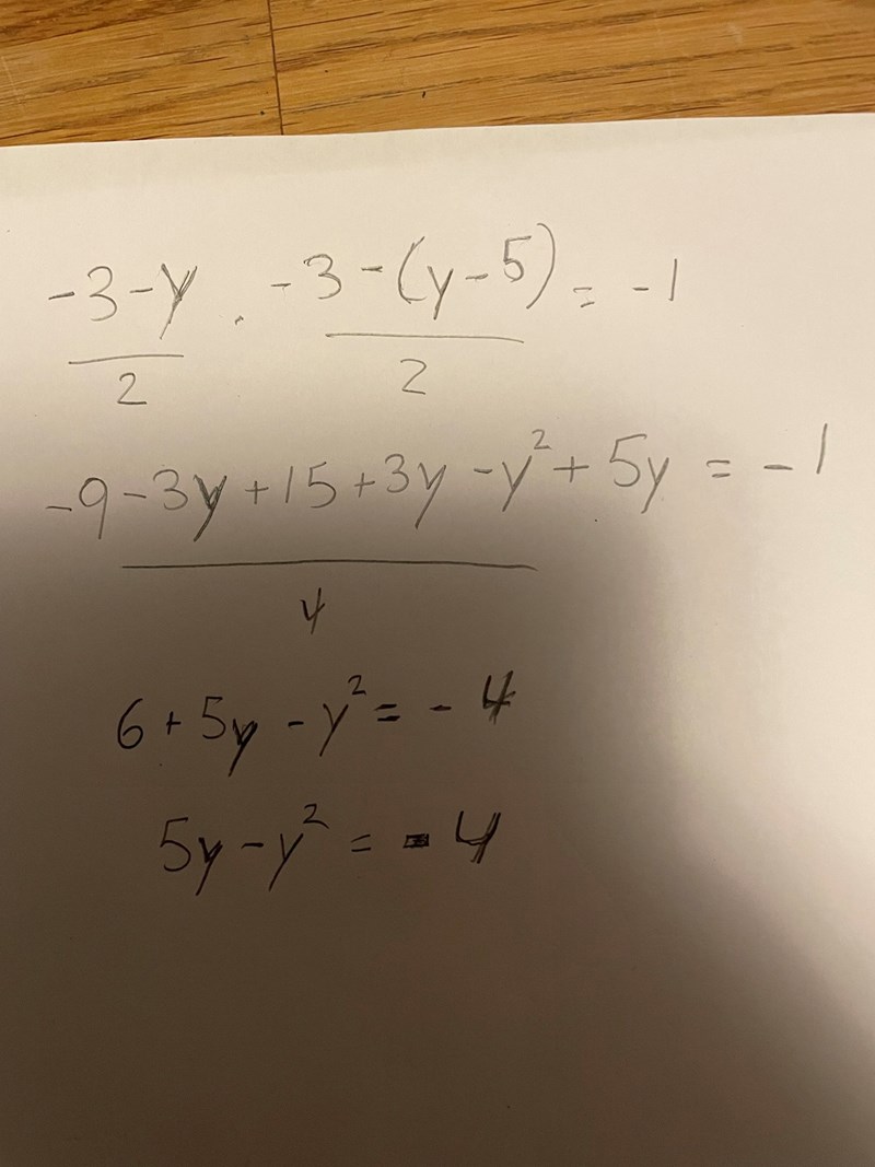 (-3-y) / (2-0) * (-3-(y-5)/ (2-0) = -1