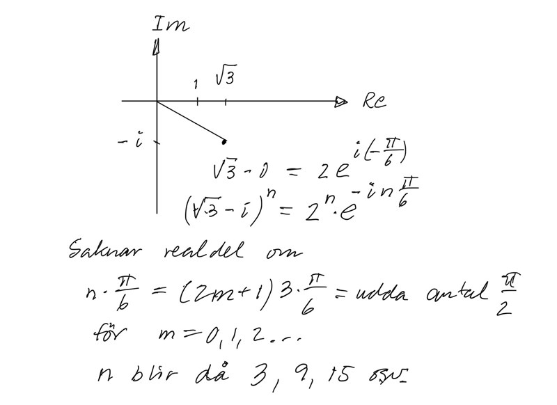 Bestäm de heltal n > 0 som gör att uttrycket saknar reell term.