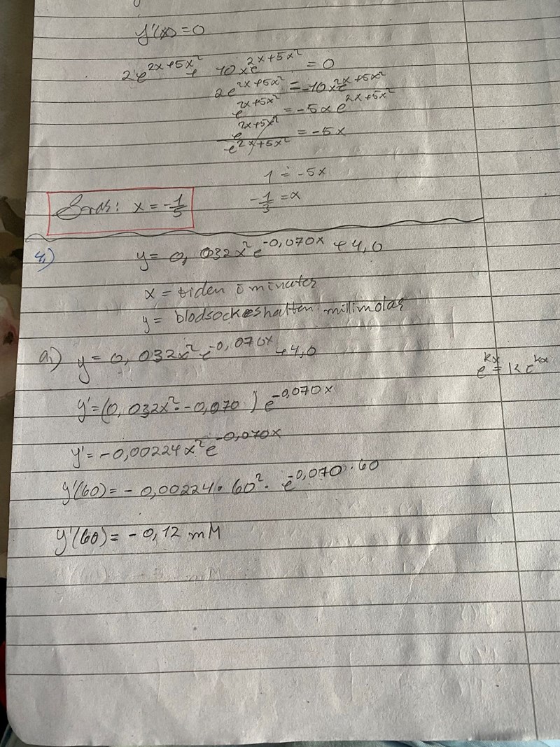 Jag har inte kollat siffrorna, men nu ser derivatan rätt ut. Enheten är däremot inte millimol, utan millimol per minut.
