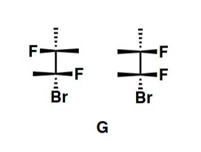 Jag tycker att dessa borde vara diasteroemerer, det är kanske inte varandras spegelbilder men de skiljer sig ändå på om de sitter på samma sida eller inte, visst båda Fluoren pekar mot åskådaren men de ena på samma sida. (tror dock inte cis/trans eller E/Z gäller här?).