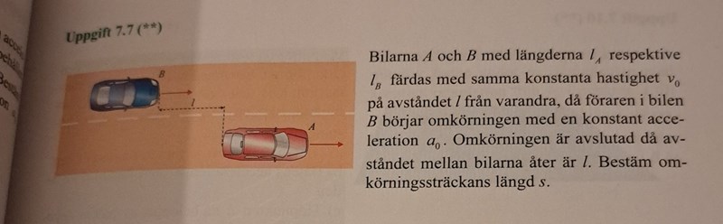 Hur ska man börja här? Jag tänker mig att man ska ställa upp en ekvation för bil B och bil A där båda har samma konstanta hastighet under t0.