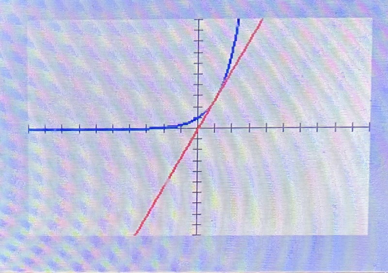 Jag ritade upp graferna på min grafräknare och fick fram detta.
