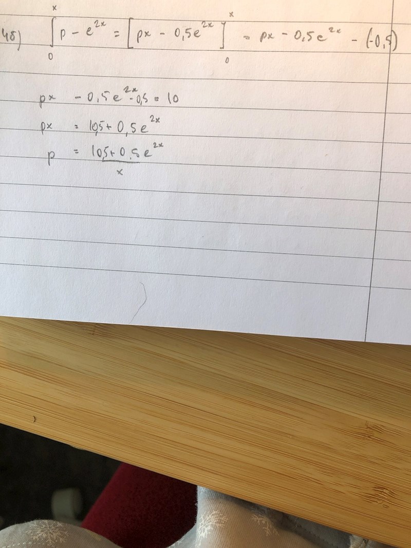 Yes nu har jag gjort det och jag fick svaret lnp^2 - p = 19. Det är rätt svar enligt facit men det står att man ska använda grafräknare för att få ett exakt svar. Jag vet inte hur jag ska göra det. Jag undrar om du eller någon annan vet om man kan göra det på geogebra. Jag försökte men jag fick inte rätt svar när jag skrev in den. Skulle någon kunna testa att göra det och visa mig. Tack på förhand.