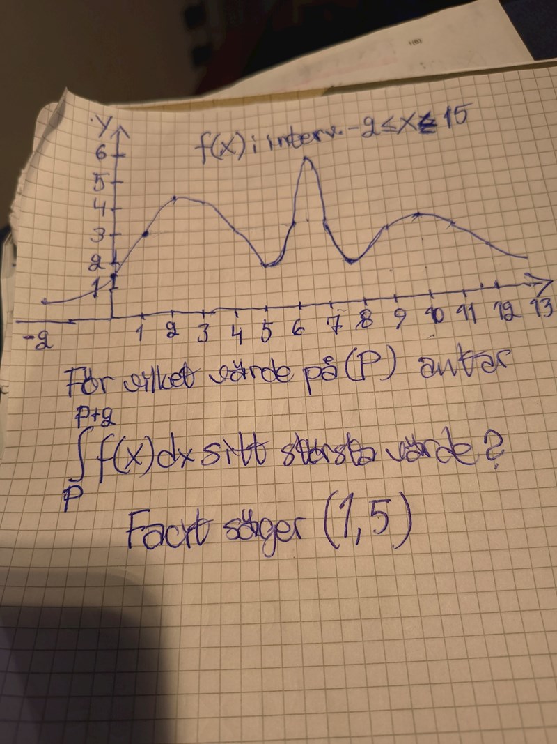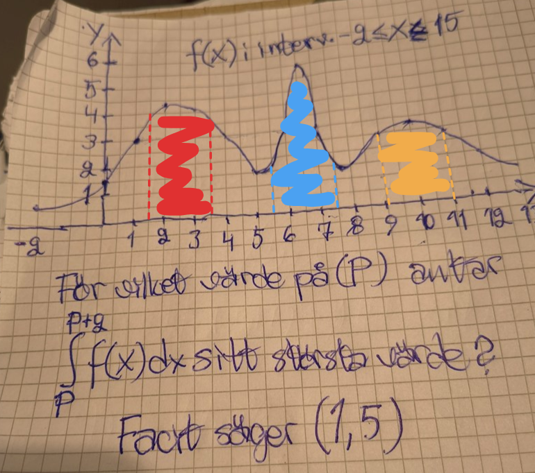 Det är arean under kurvan från P till P+2, alltså ett intervall med bredden 2, som vi söker.