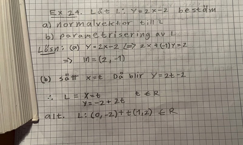 Men jag förstår inte riktigt hur man kan komma fram till att L: (0,-2) + t(1,2).