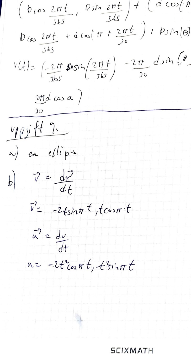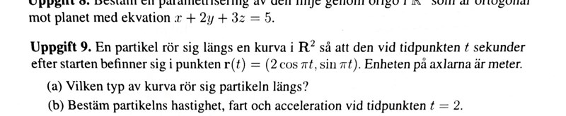 Såhär gjorde jag i b) har jag tänkt rätt? Sen har jag även stoppat in t=2 i första derivatan och andra derivatan men tyvärr håller ej facit med mig om svaret jag fick. Jag fick (0,2) och sen (-8,0). Farten vet jag ej hur man kan räkna ut.