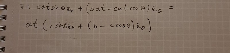 Dr. G skrev:Använd uttrycken för hastighetsvektorn och accelerationsvektorn i polära koordinater.