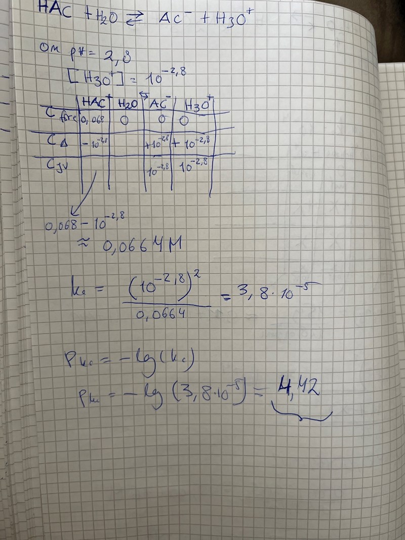 Katarina149 skrev:Jag vill beräkna pKa värdet för ättiksyra.