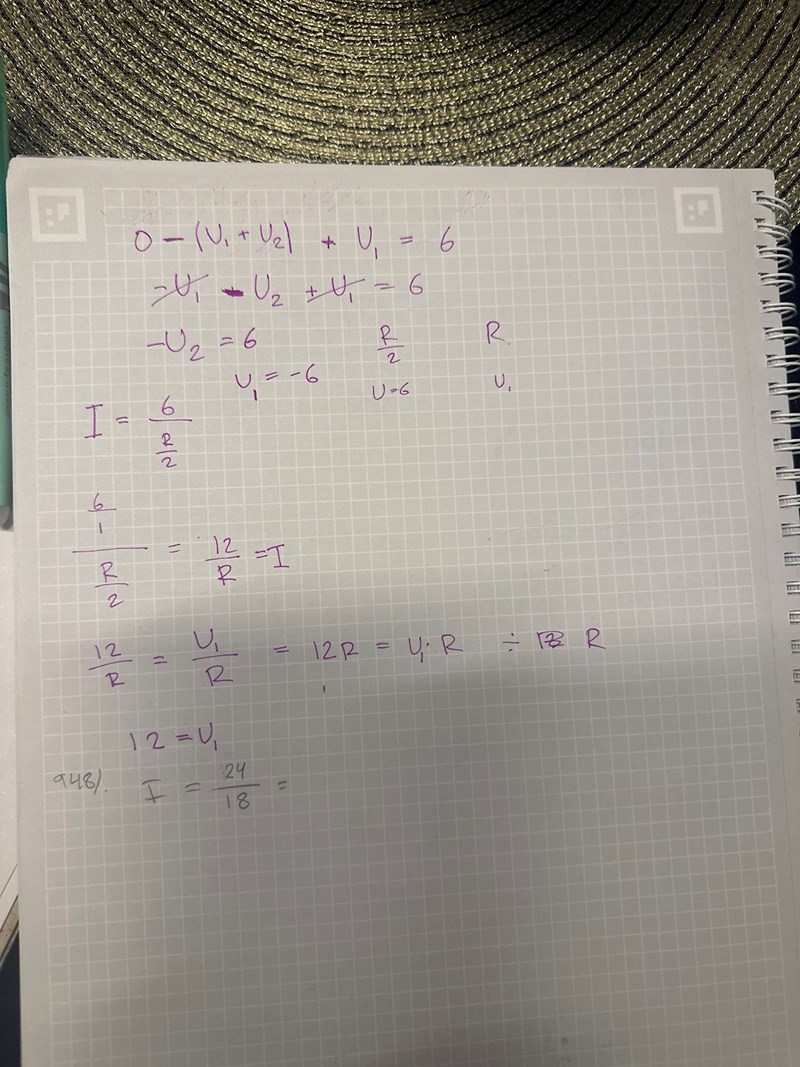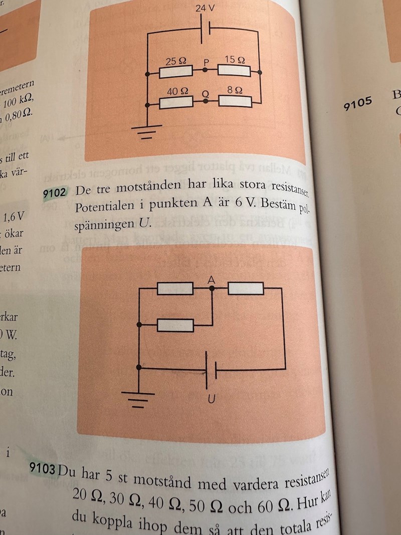 En fråga, hur kan punkt A ha positiv potential? I området innan parallellkopplingarna är det 0 eftersom det är är jordat och eftersom man går igenom ett motstånd med strömriktningen så kommer potentialen minska dvs 0- motståndet för parallellkopplingarna och då bör väl A punkten ha en negativ potential?