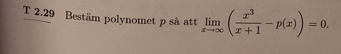 Du skall hitta ett polynom p(x) sådant att x3/(x+1) - p(x) går mot noll.