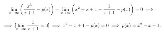 Man kan ha kvar mellansteget där x går mot oändligheten för x2-x+1-p(x), och här har de hoppat över det och direkt dragit slutsatsen att x2-x+1-p(x) måste vara 0 för att det gränsvärdet ska existera.