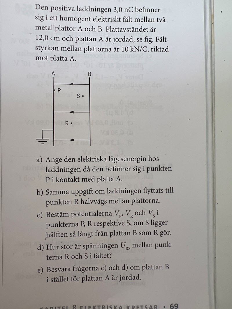 jag behöver hjälp med uppg c. Jag använder formeln V = E • s och får svaret till 0V, 6000 V och 9000 V. I facit står det 0 V, 600 V och 9000 V. Varför blir det fel?