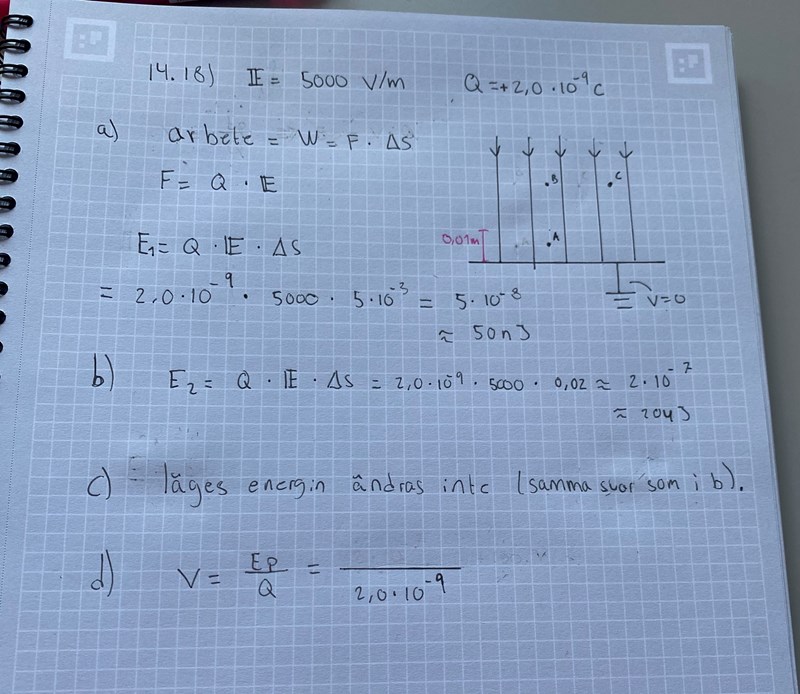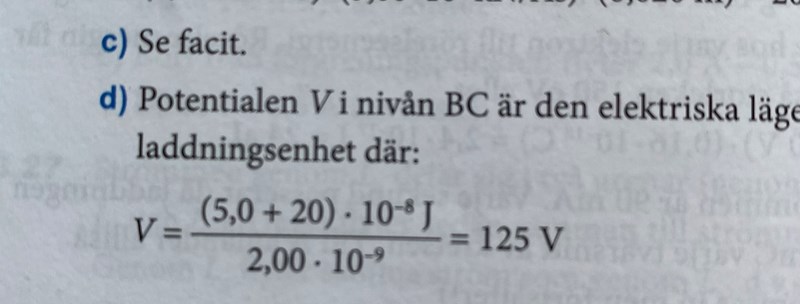 Konstigt att det står under d att V är lika med nånting i joule och sedan lika med nånting i volt. Det ena är fel.
