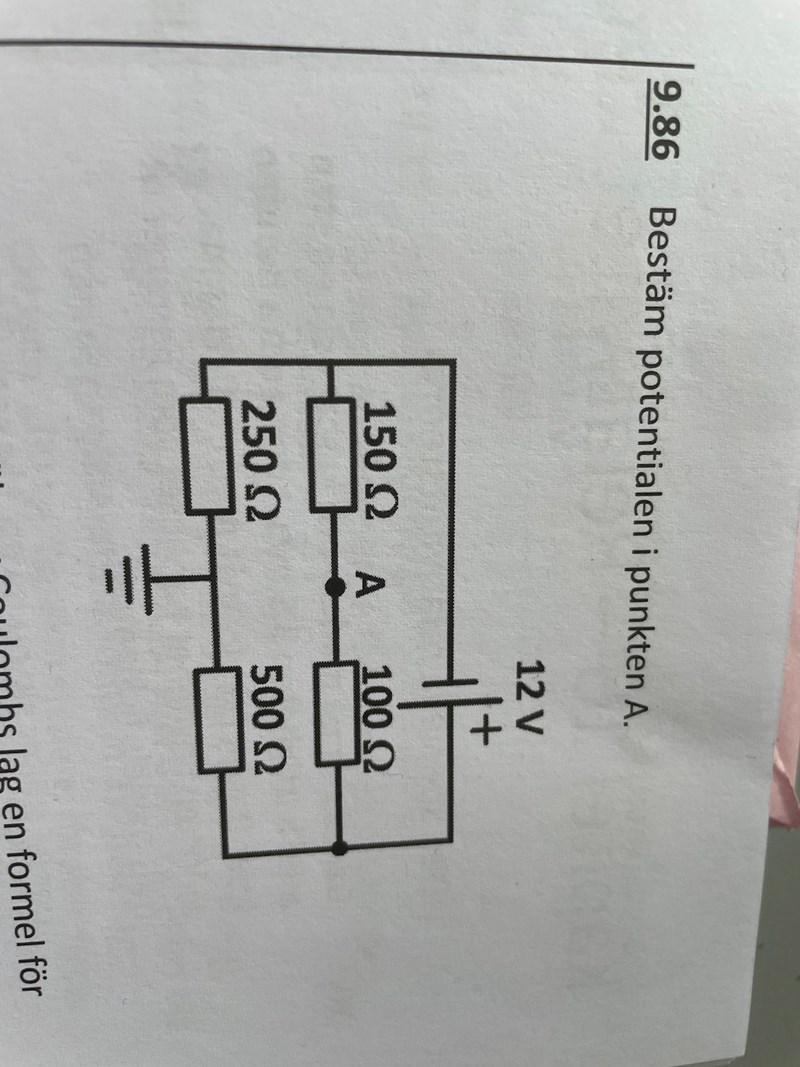 Behöver hjälp med denna uppgiften. Jag har tagit reda på Rtot och där med I. Vet att jag ska möta potentialen utifrån den jordade punkten men hur fungerar det när den är parallell med punkten A?