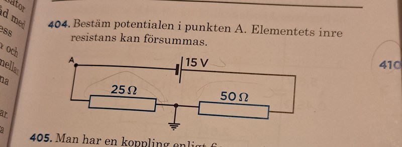 Bestäm potentialen i punkten A