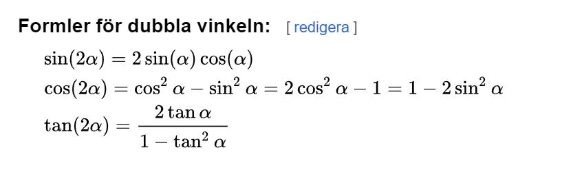 Du har säkert någon liknande formel för cos2, men den kanske är formulerad på ngt annat sätt, exvis