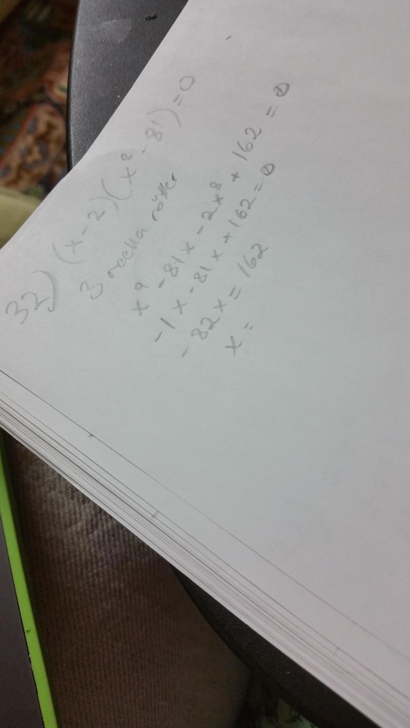 I ditt fall hade du (x-2) * (x^2 - 81) = 0.