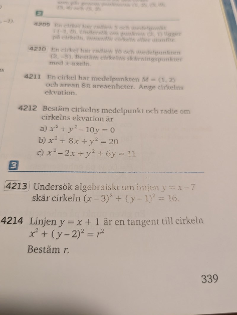 Medelpunkten för cirkeln är (0,2). Kan du rita bild med cirkel och linjen y=x+1?