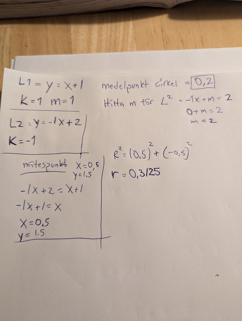 Eftersom cirkelns medelpunkt 0,2 måste ligga på linjen y2
