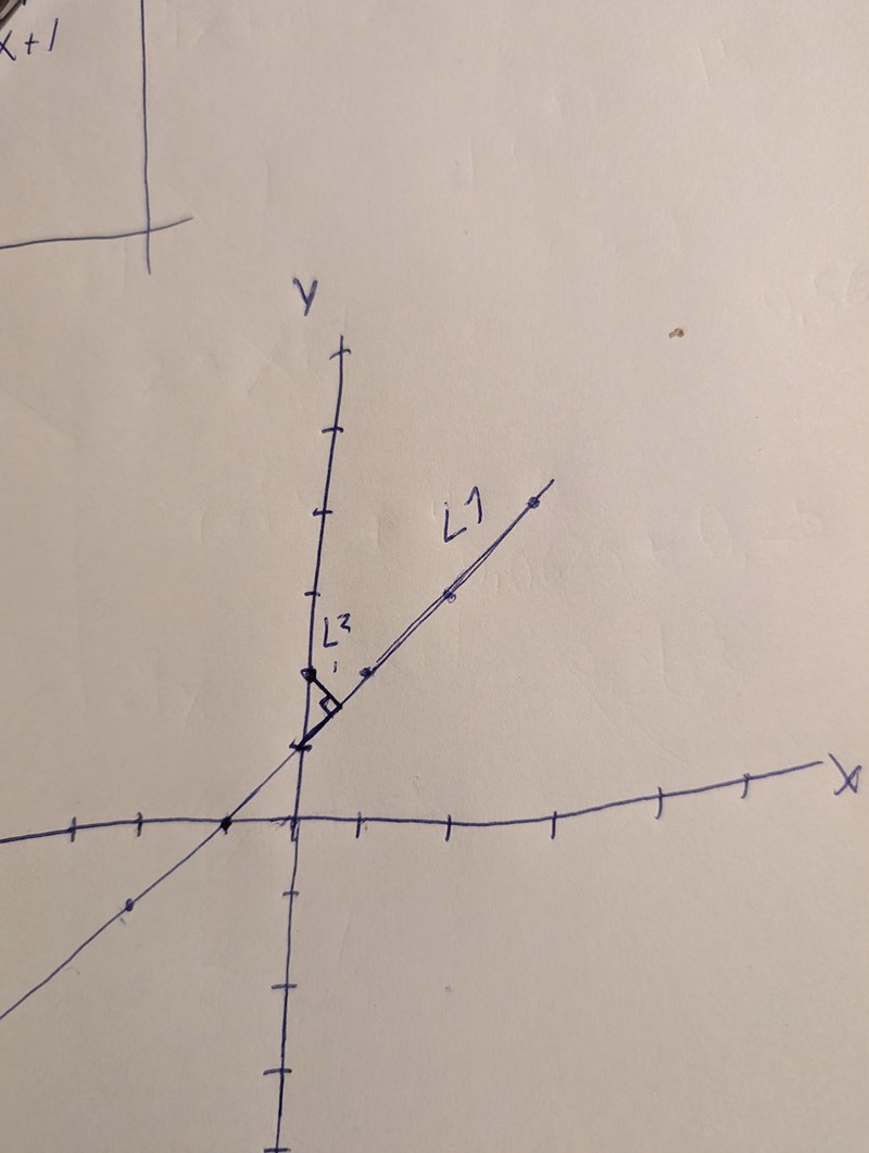 I den punkten måste linjen y2 vara vinkelrät mot linjen y1.