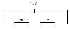 Ett motstånd med resistansen R är seriekopplat med ett 20 Ω-motstånd. Motstånden är anslutna till en polspänning av 12 V enligt figur nedan. Bestäm R så att effekten som utvecklas i detta motstånd är 1,0 W