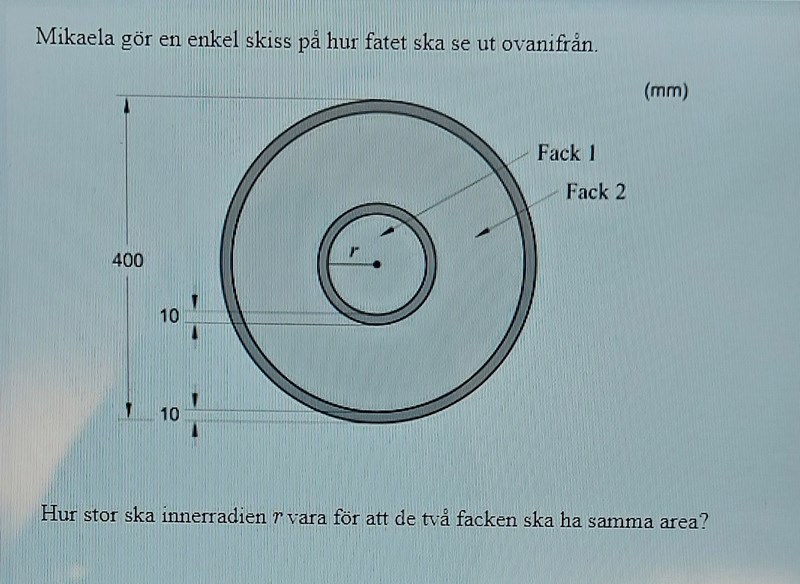 sedan sätter du det som lika A(fack1) och löser ut r.