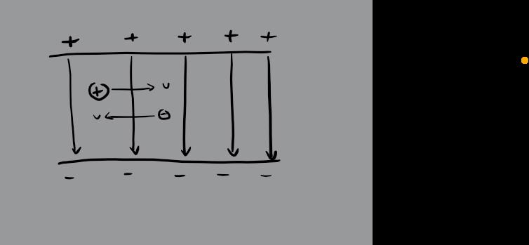 Vilka krafter verkar på resp partikel? Tänk på att de har olika laddning!