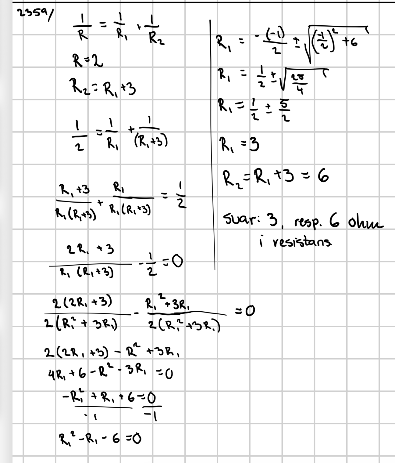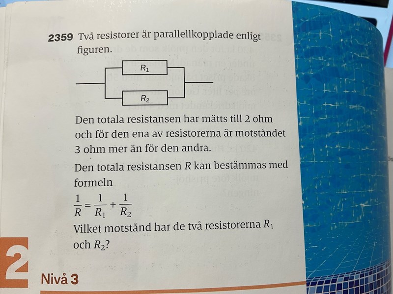 MEn å andra sidan kanske man kan kasta om uttrycket så man tex får 1/R2=1/R - 1/R1 och att det som står i H.L där ska vara lika med 1/R1+3? Jag vet inte, men det var två tankar jag hade. Båda känns dock lite fel.