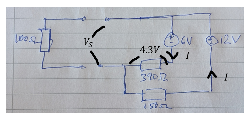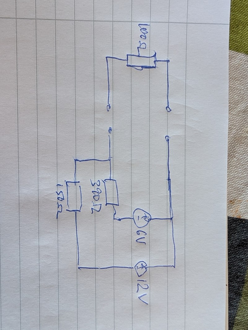 Jag lyckades lösa uppgiften med parallella strömtvåpoler men hänger inte riktigt med på hur du kom fram till din koppling. Hur kommer det sig att 100-ohms resistorn är bortkopplad?