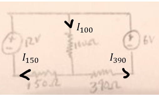 Ser du skillnaden. Istället för två seriekopplade motstånd på 390 och 150 ohm, så blir det något annat. Som i sin tur kan förenklas med antingen Norton- eller Theveninekvivalent, eller också räknar men ut strömmen genom 100 ohm direkt, och sedan P=I^R.